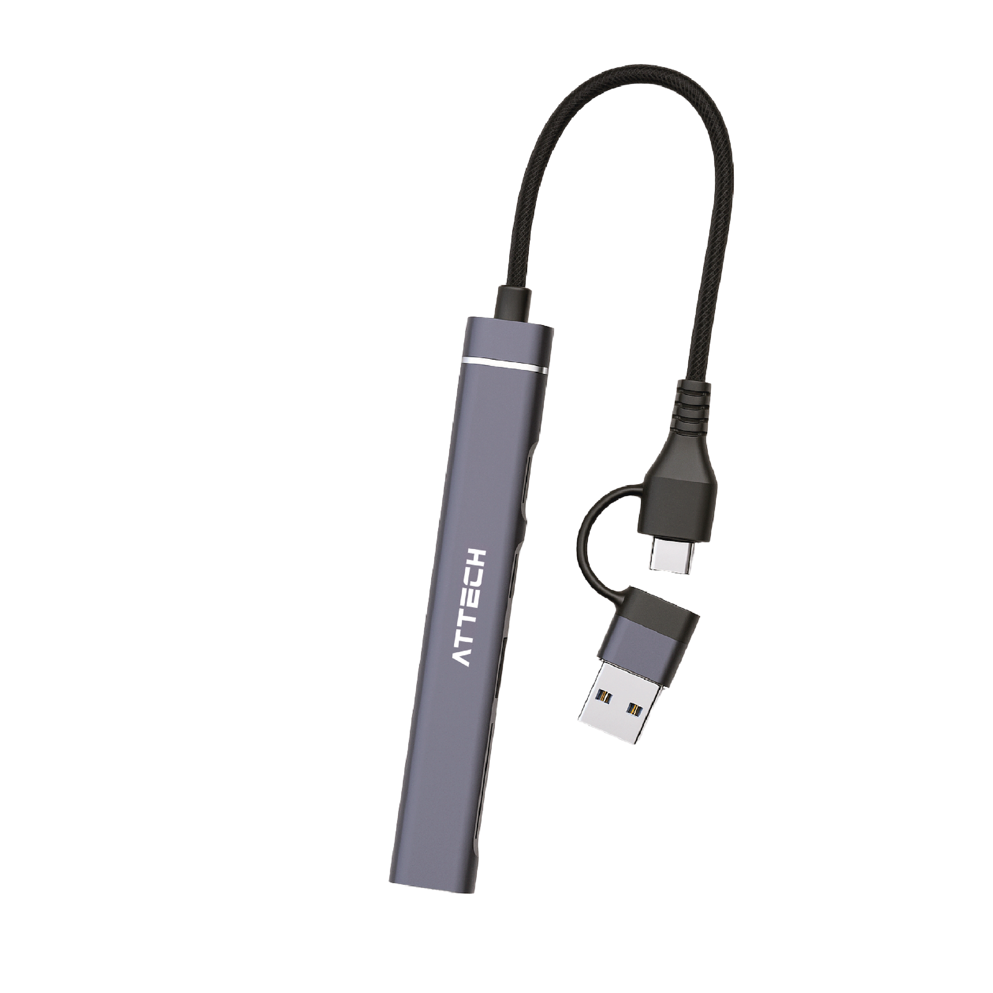 HUB Multipuertos Attech AT025 - 5 en 1 USB, USB-C, MICRO SD, SD